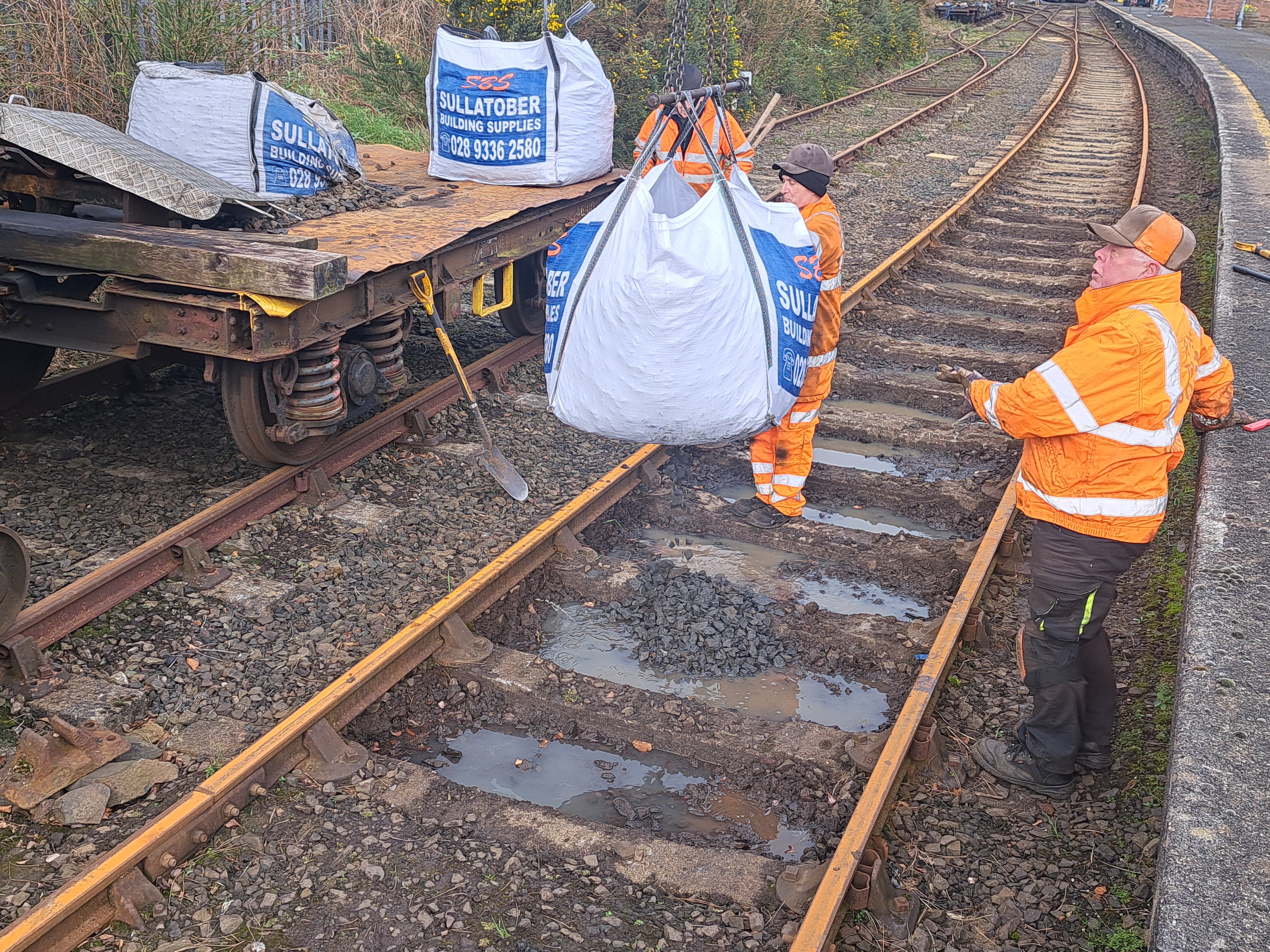 13/3/2026: The Whitehead Site Squad re-ballasting the platform road.